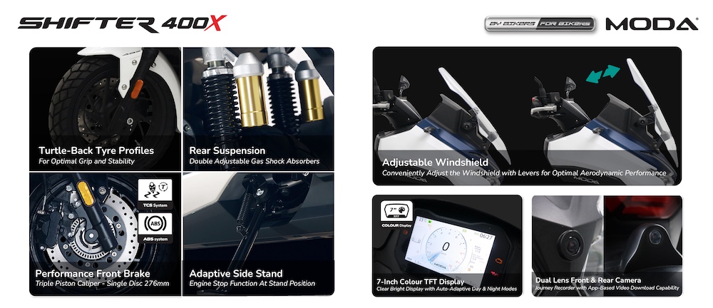MODA Shifter 400X turut dilengkapi sistem keselamatan moden seperti: