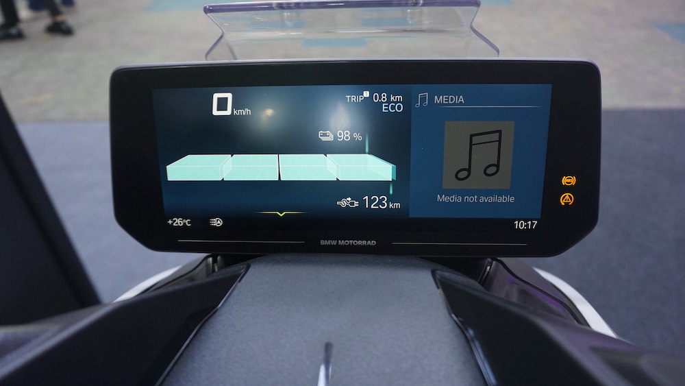 - Panel meter TFT digital berwarna 10.25 inci dengan aplikasi navigasi dan BMW Motorrad Connected.