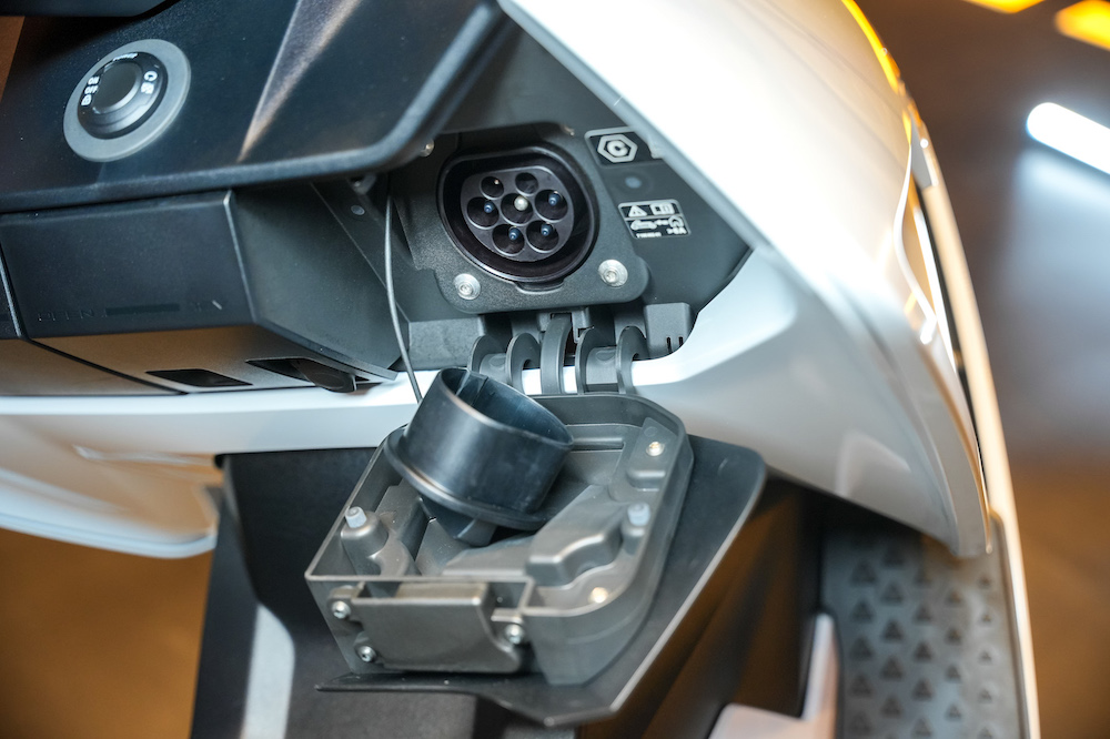 - Bateri boleh dicas semula menggunakan soket rumah, kotak dinding (wallbox) atau stesen cas awam.
