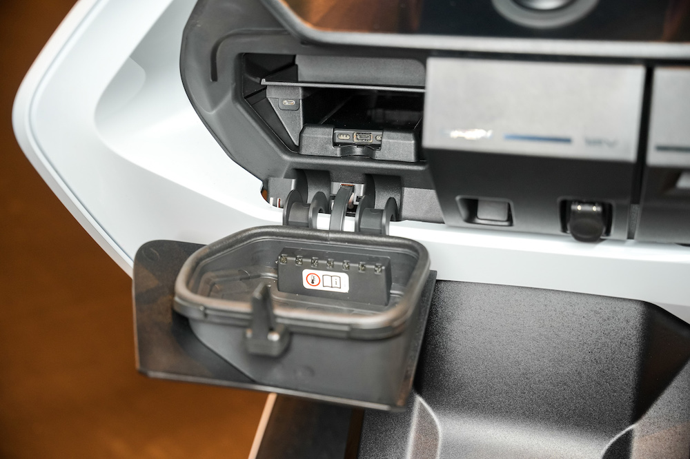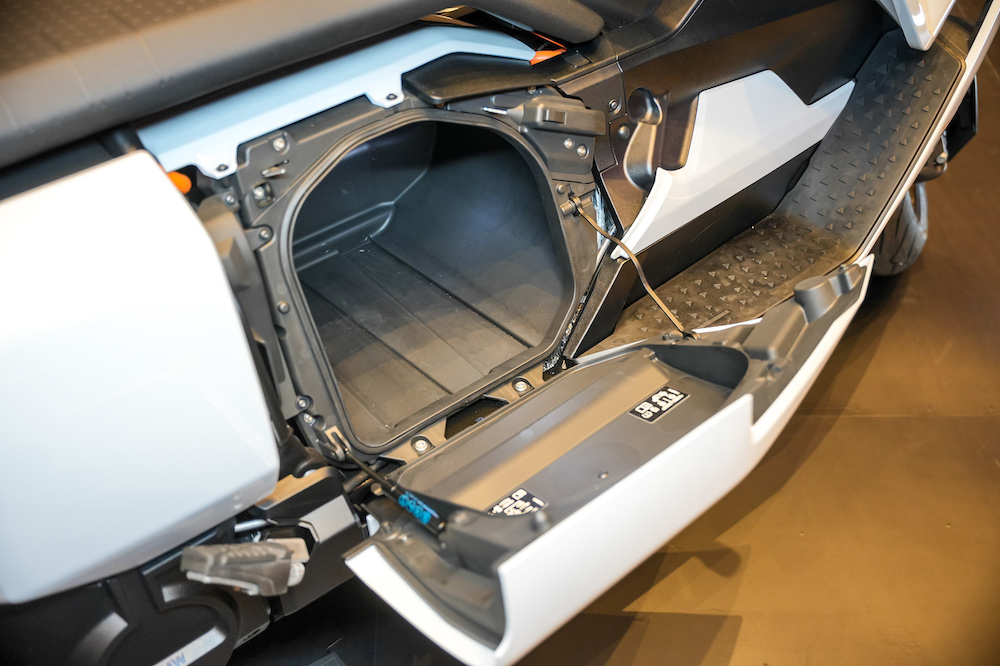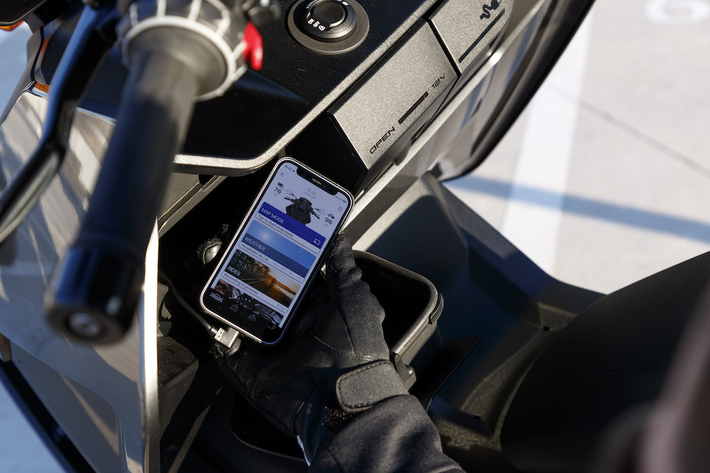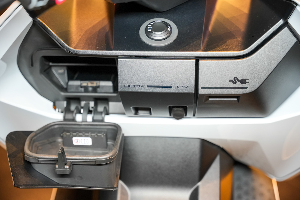 - Ada port USB dan soket kuasa 12V, serta ruang simpanan helmet.