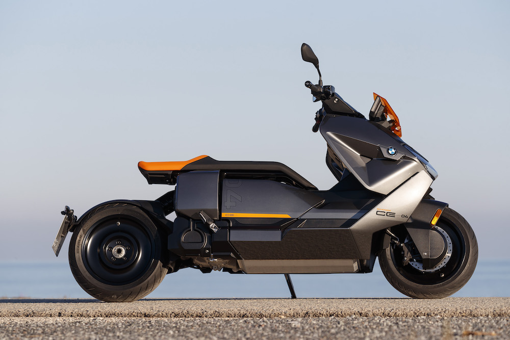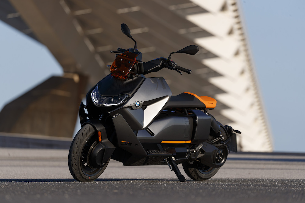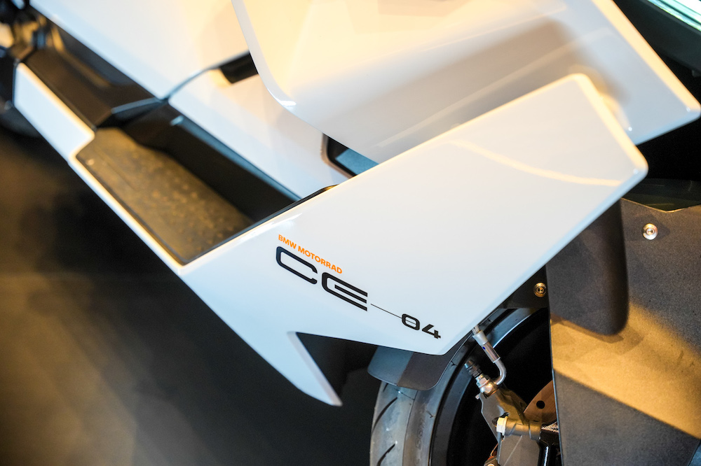 BMW CE 04 (2023) menampilkan rekabentuk futuristik dengan inovasi pemacu elektrik yang menjanjikan kuasa dan jarak tunggangan sesuai untuk tunggangan bandar.