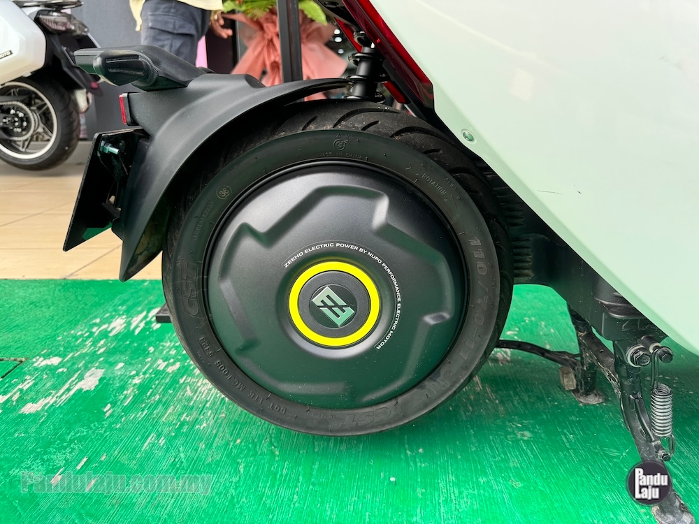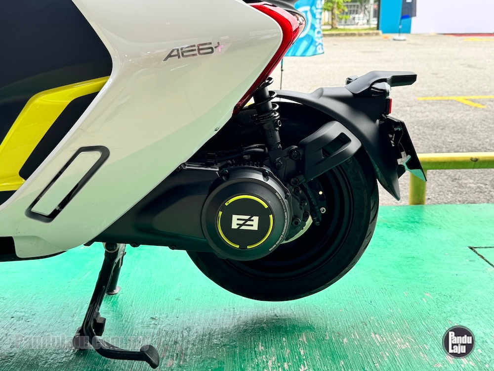 - Unit motor elektrik dipasang pada swingarm, berkuasa 5.5kW (7.4hp) dan tork 160Nm.