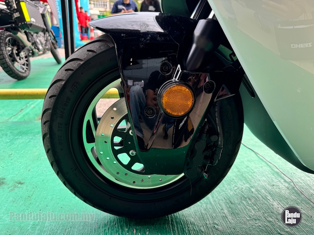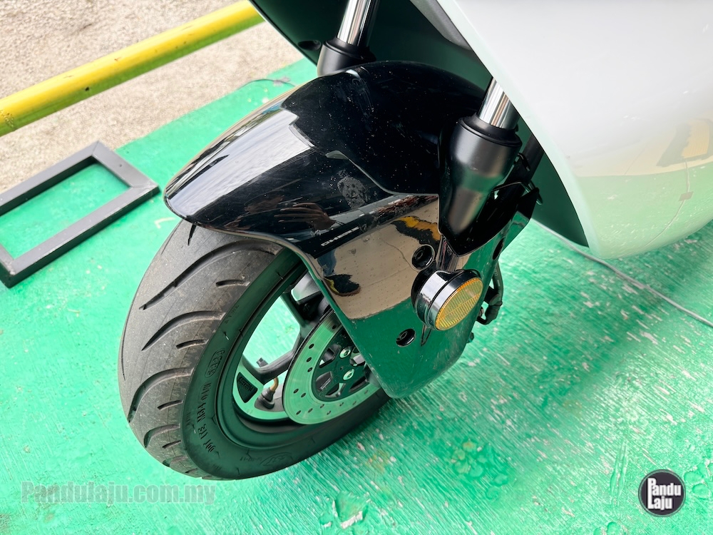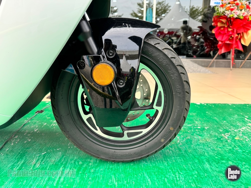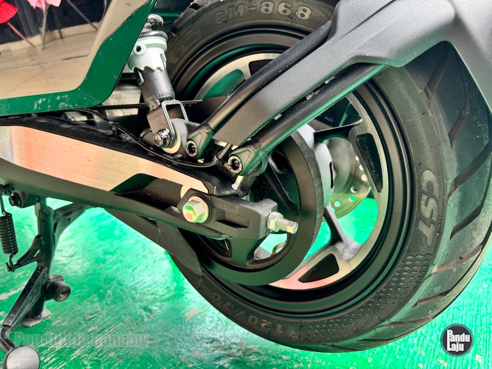 - Rim aloi 12 inci dengan tayar CST berukuran 100/80 (depan) dan 120/70 (belakang).