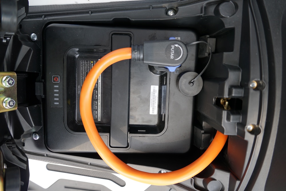 • Bateri litium 60V 28Ah jenis boleh tanggal atau dicas terus dari skuter