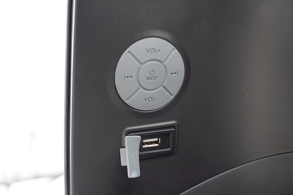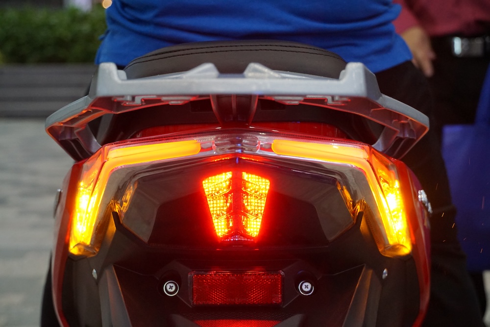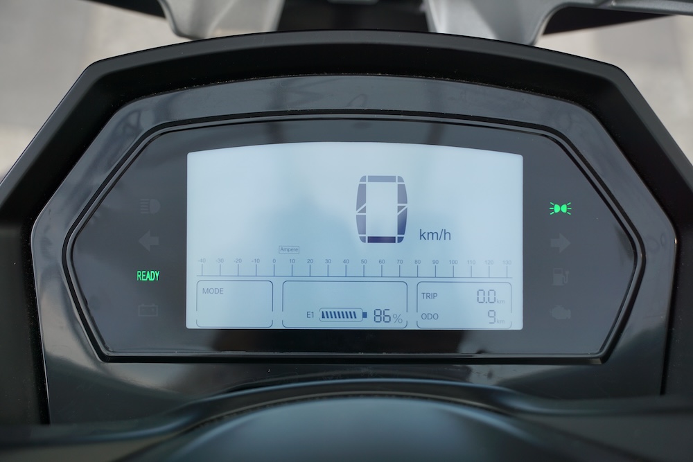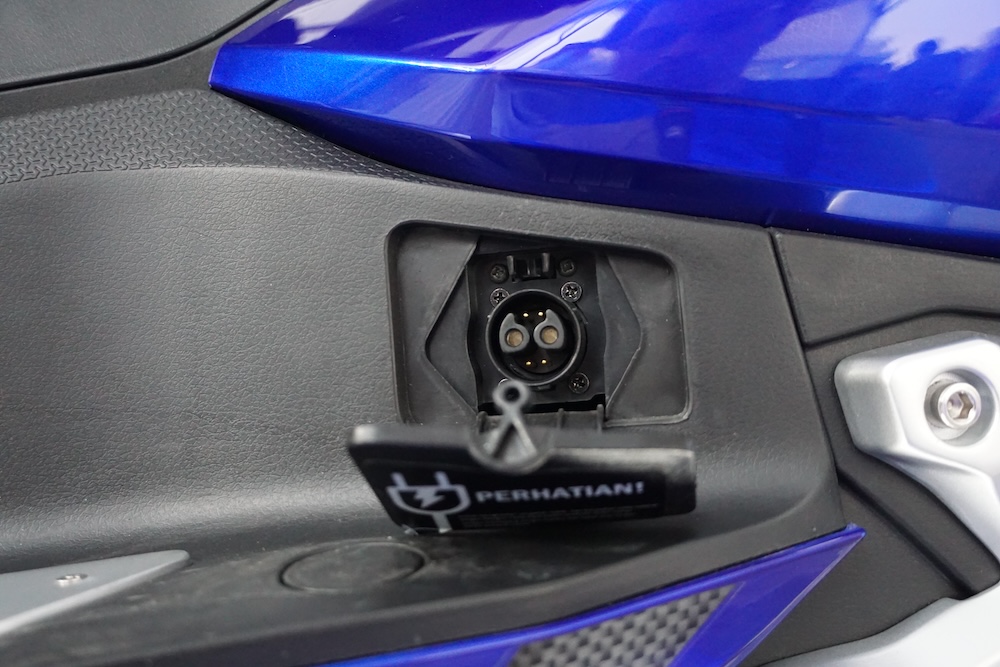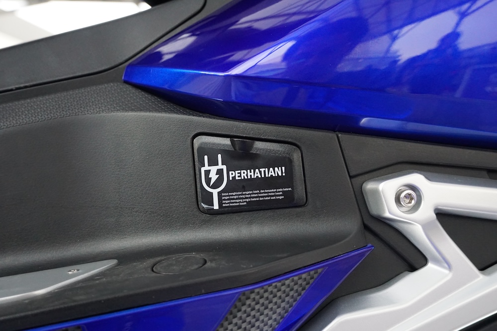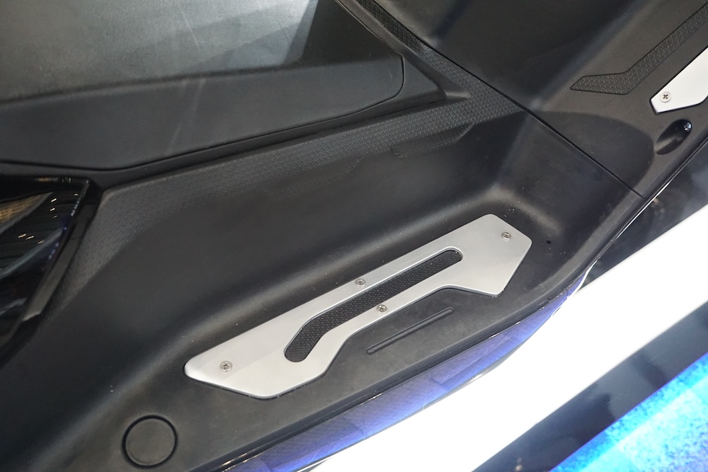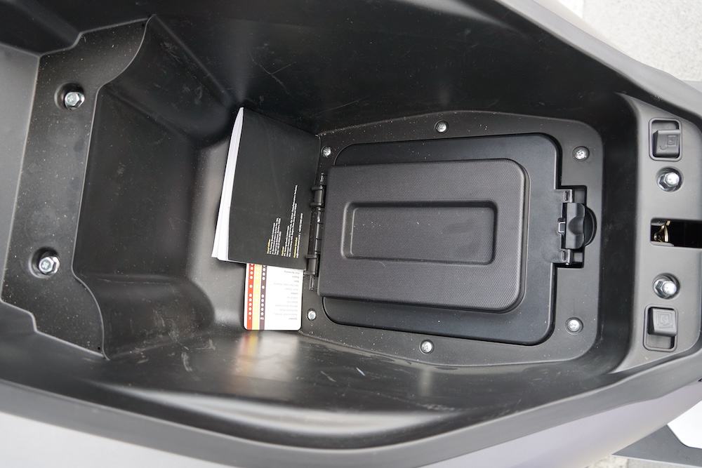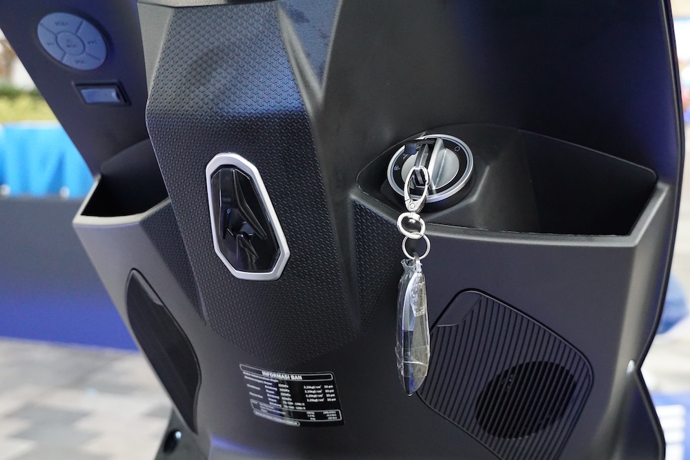 • Sebelah panel depan-kiri skuter dilengkapi konsol kawalan audio dan port USB. Skuter ini juga ada bunyi audio ala ekzos sportbike dan turut dilengkapi radio FM.