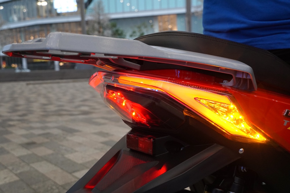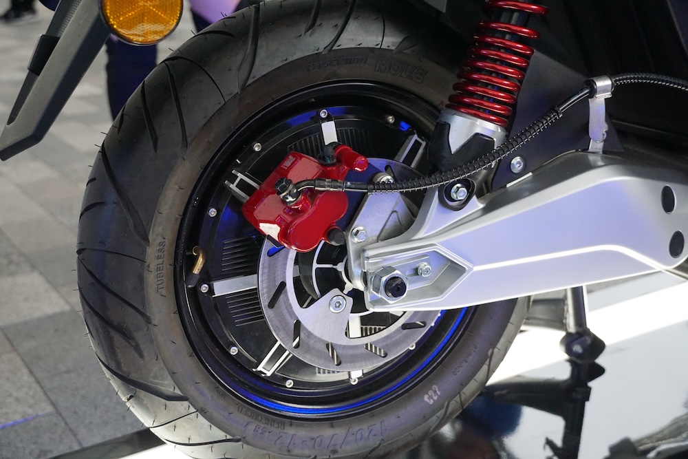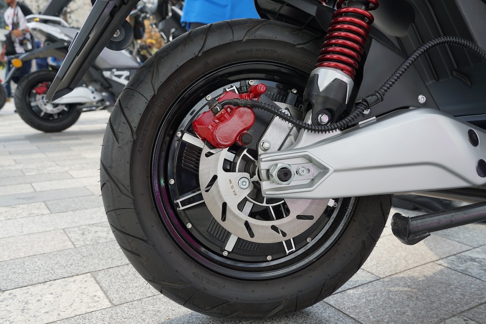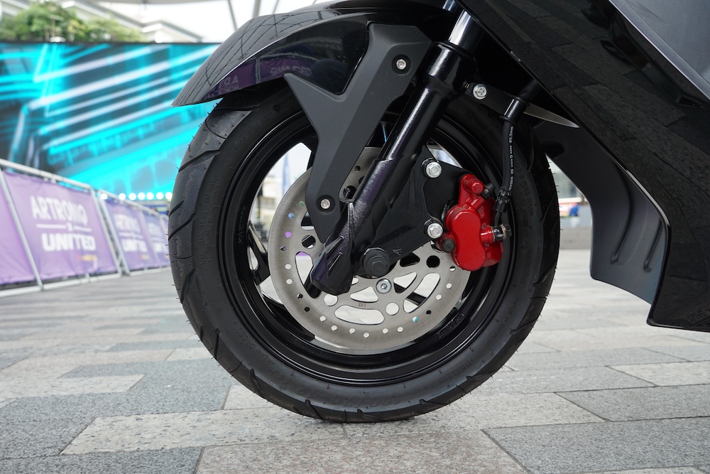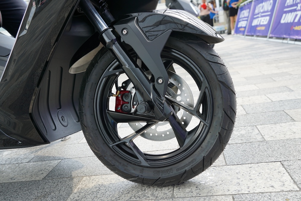 • Rim aloi 12 inci TX1800 bercorak tiga jejari dengan saiz tayar 100/70 (depan), dan 120/70 (belakang).
