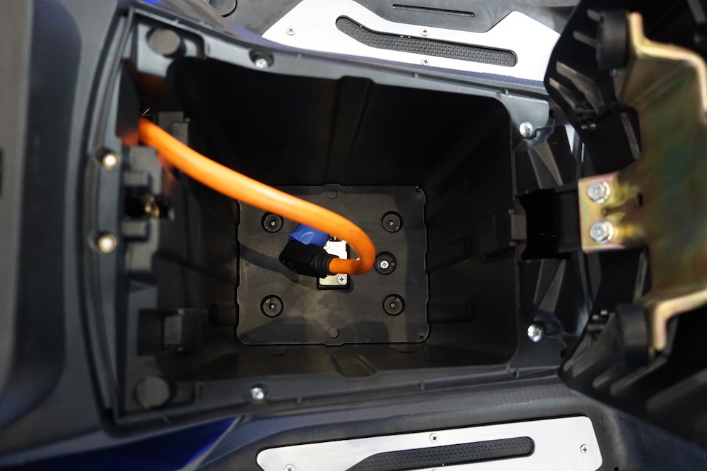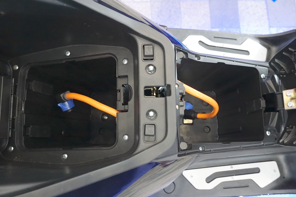 • TX1800 juga ada slot bateri kedua di ruang simpanan bawah pelana tetapi tiada kabel sambungan disediakan.