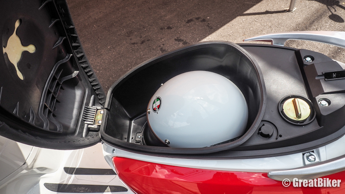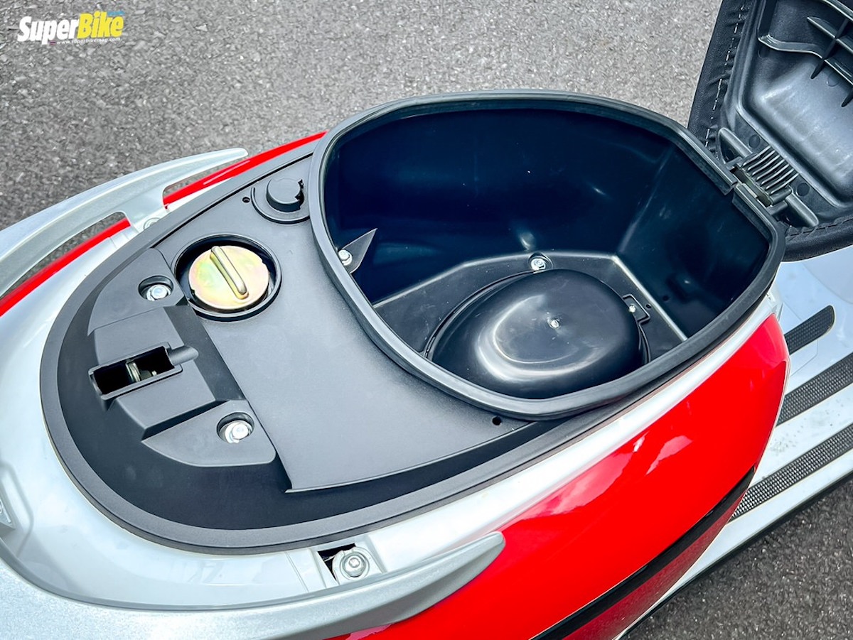 - Ruang simpanan bawah pelana 23 liter boleh menempatkan helmet muka penuh.