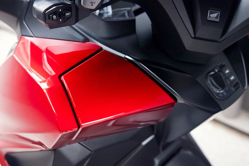 - Ada pelbagai aksesori tambahan dijual berasingan seperti kotak pintar atas 45 liter, kotak atas 35 liter, rak belakang, beg, pelana khas, panel lantai, grip pemanas dan lain-lain.