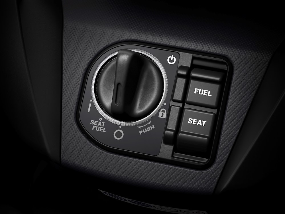 - Menggunakan sistem kunci pintar (Smart Key) untuk menghidupkan enjin, mengunci skuter dan membuka pelana.