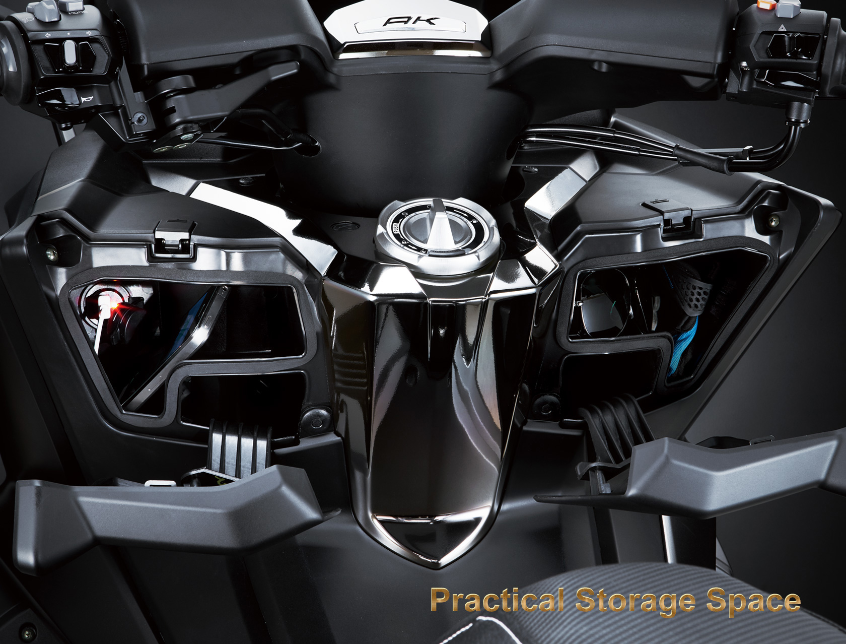 Dengan menjadikan Yamaha T-Max sebagai penanda aras, AK550 cukup berkuasa untuk menyaingi skuter maksi Yamaha tersebut. Tarikan utama AK550 yang paling menonjol adalah kehadiran panel instrumen dengan paparan interaktif Noodoe.