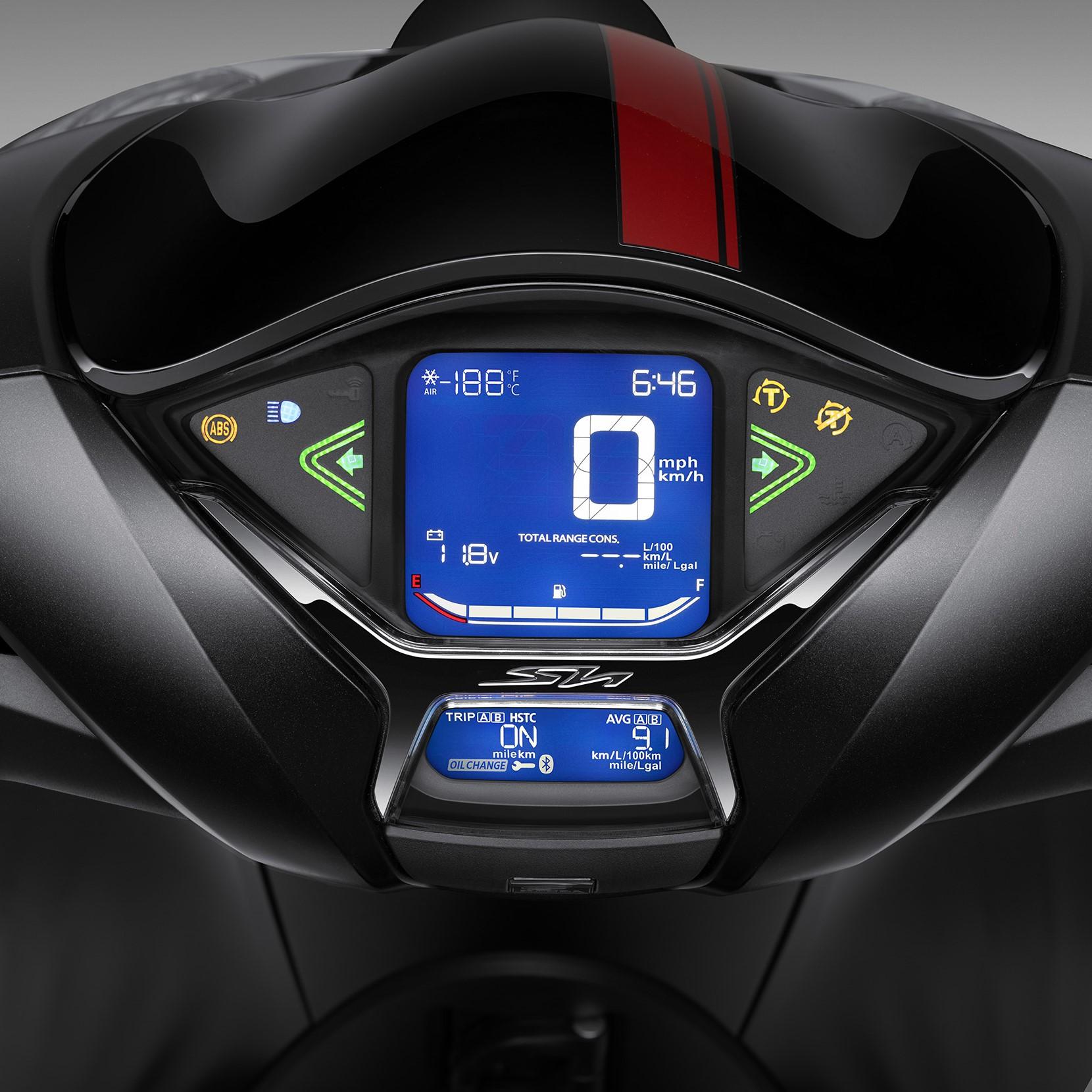 - Honda SH160i dilengkapi ciri Bluetooth yang boleh dihubungkan pada aplikasi MyHonda+ menggunakan telefon pintar.
