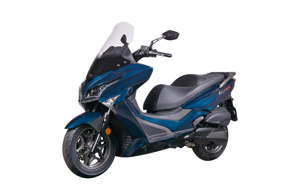 Skuter itu ialah model versi dipertingkat, Elegan 250 ABS yang kini patut piawaian Euro4 dan hadir dalam dua warna pilihan, Matte Silver Crystal (perak) dan Petroleum Blue (biru gelap).