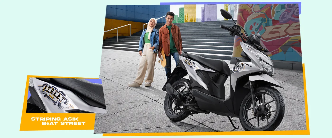Saudaranya, Honda BeAT Street (2023) pula menampilkan kemas kini rekaan grafik yang lebih artistik dalam warna sedia ada, Street Black dan Street Silver.