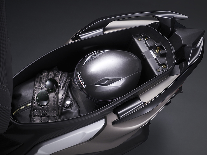 - Ruang storan bawah pelana mampu menyimpan satu helmet separuh muka.