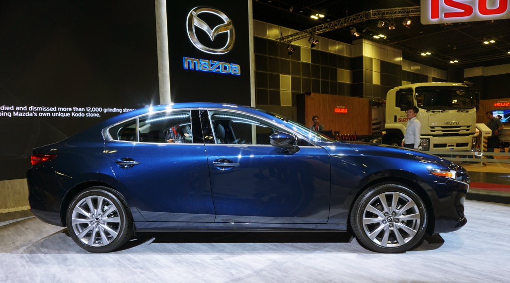 Menurut wakil Mazda Singapura, unit tersebut ialah versi Skyactiv-G 2.5L. Peringkat global, Mazda3 memiliki empat varian enjin: Skyactiv-G 1.5, Skyactiv-G 2.0L dan Skyactiv-D 1.8L. Penampilan baharu sedan itu mengambil ilham Konsep Kai menerusi lampu depan runcing dan gril besar agresif.