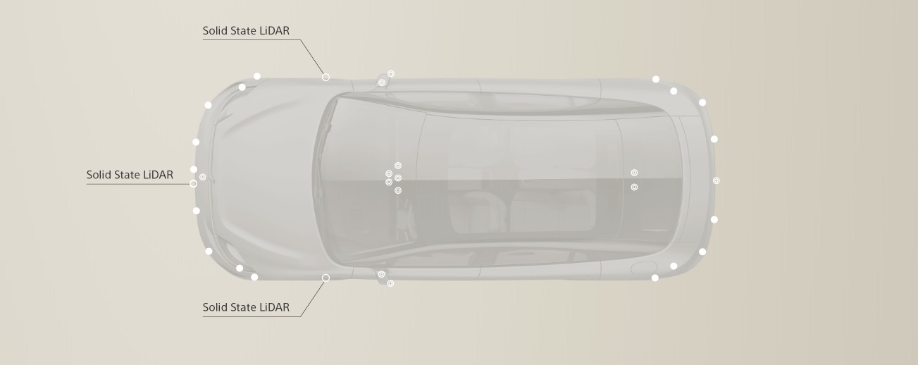 Di dalam kabin, Vision-S dipasangkan sensor Time of Flight (ToF) yang mampu mengesan kehadiran manusia dan objek lain. Menurut Sony, model konsep itu ialah kereta elektrik autonomi Tahap 2.