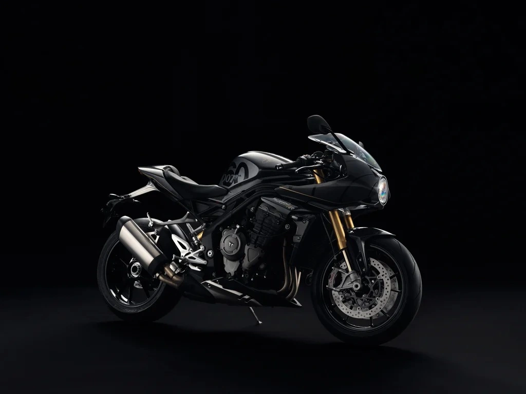 Triumph memulakan kerjasama bermula filem No Time To Die menerusi model Tiger 900 dan Scrambler 1200. model aniversari Speed Triple 12000 RR Bond Edition (2023) ini pula menampilkan skema tiga warna dalam Black (hitam), Granite Gray (kelabu) dan Storm Gray (kelabu) dengan dekal khas ’60 Years of Bond’ pada sisi tangki minyak.
