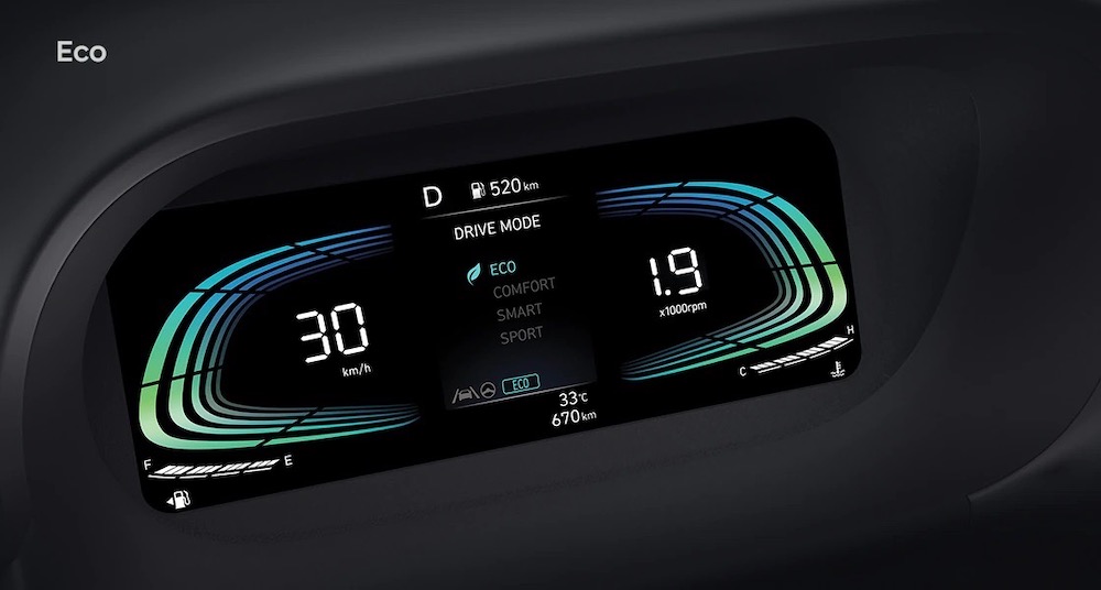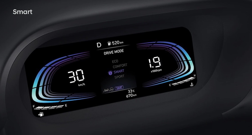 - Empat mod pemanduan: Comfort, Eco, Sport danSmart (anjakan gear berubah mengikut gaya pemanduan).