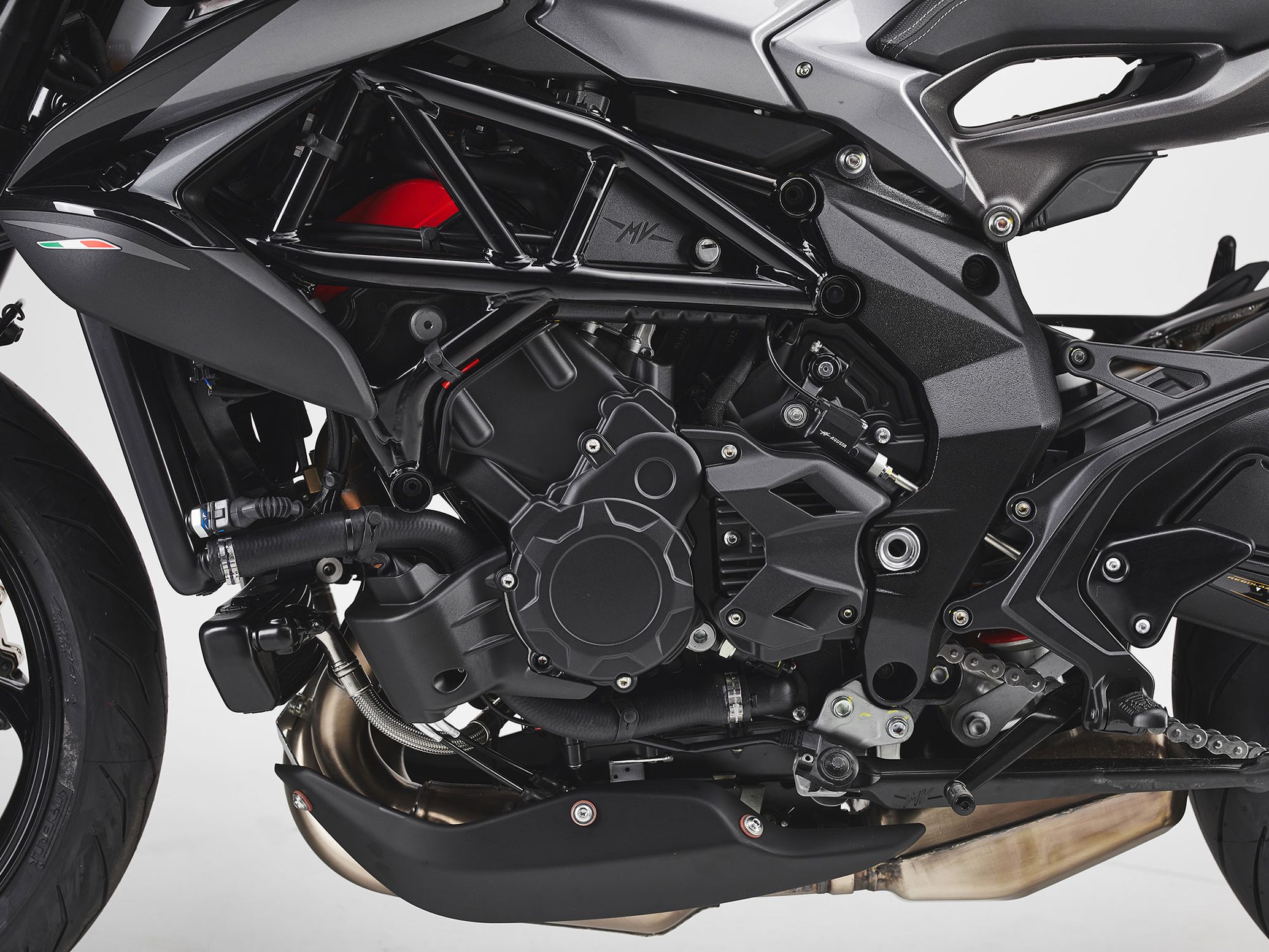 - Kedua-dua model menggunakan spesifikasi mekanikal sama yang patuh Euro5, iaitu enjin 3-silinder 798cc penyejukan cecair berkuasa 138hp @ 12,300rpm dan tork 87Nm @ 10,250rpm, serta transmisi MV EAS 3.0 manual 6-kelajuan dengan Quickshifter dwi-arah. Kelajuan maksimum mencapai 244kmj.