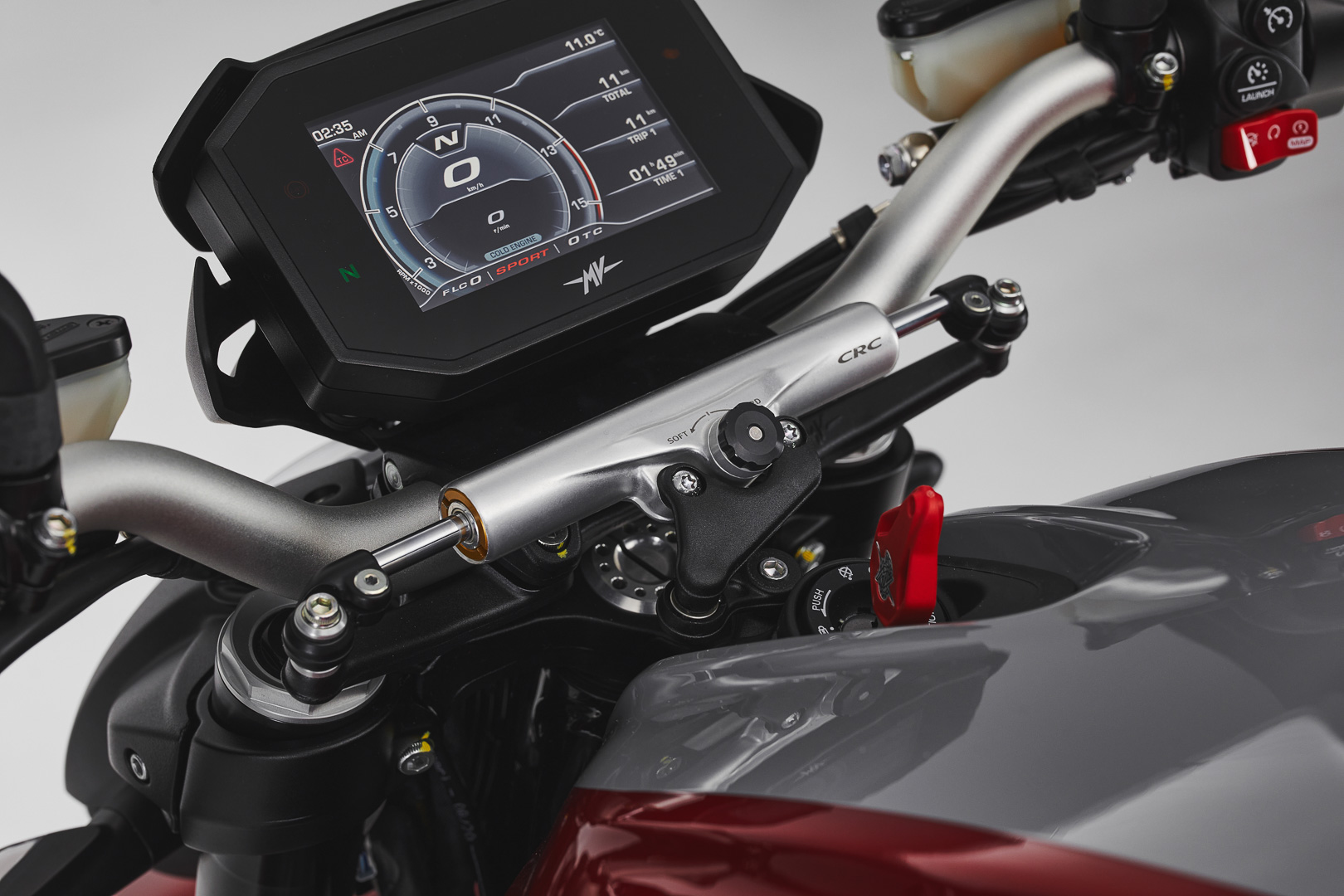 - Dragster RR mendapat cermin sisi hujung hendal, ekor bobbed, dan rim jejari. Paparan TFT warna kini dilengkapkan fungsi konektiviti Bluetooth yang boleh dihubungkan dengan aplikasi MV Ride.