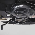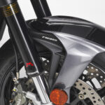 • Sistem brek menggunakan dwi-cakera 320mm dan cakera tunggal 220mm di belakang yang kedua-dua diapit kaliper Brembo.