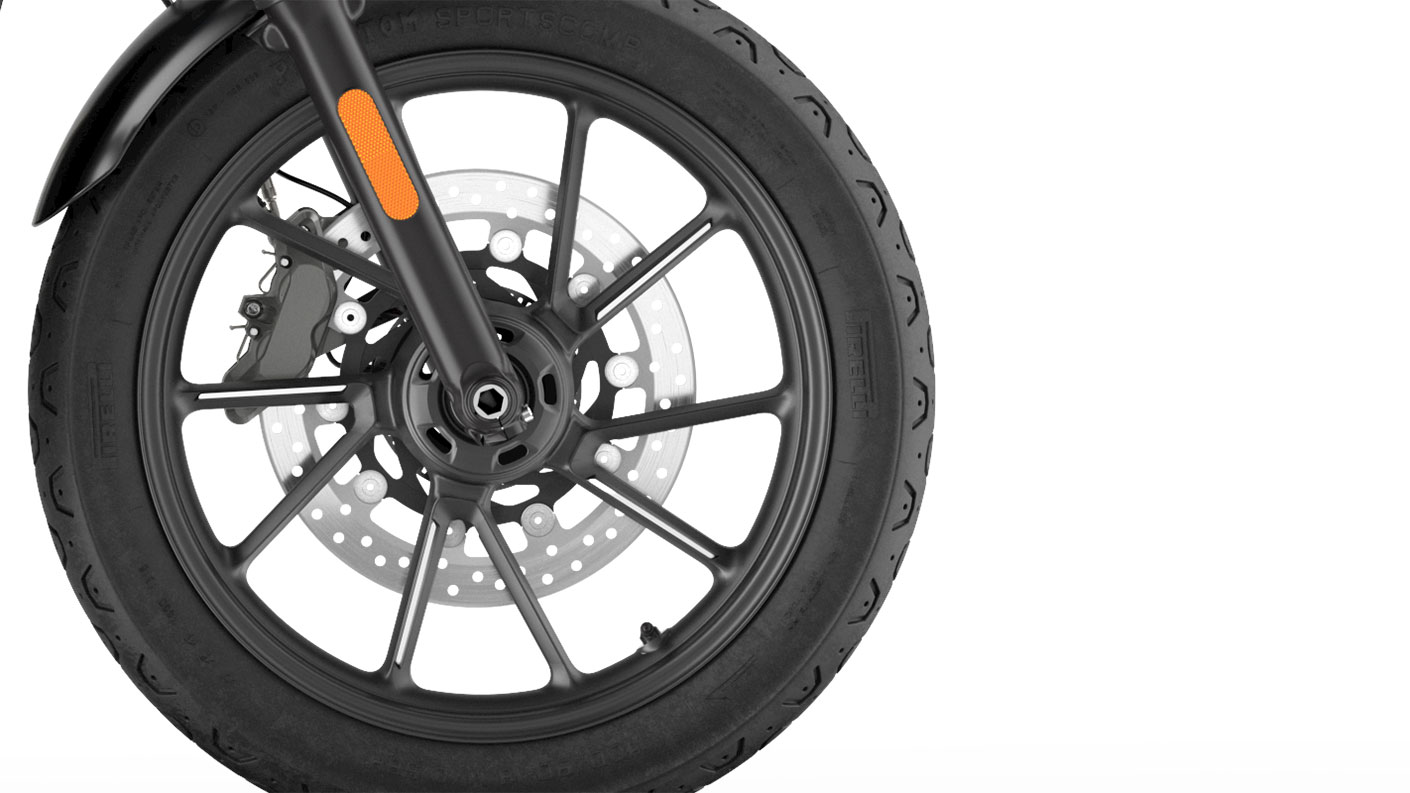 - Bahagian roda menggunakan rim aloi tempa multi-jejari 18 inci (depan) dan 17 inci (belakang), dan dibalut tayar 100/90 R18 (depan), dan 150/70 R17 (belakang).