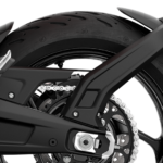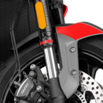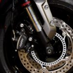 - Sistem suspensi menggunakan fork terbalik (USD) 41mm dengan fungsi pisah (SFF) pada setiap kaki fork, dan bukan jenis boleh laras. Suspensi belakang menggunakan monoshock Showa dengan peredam prabeban boleh laras.