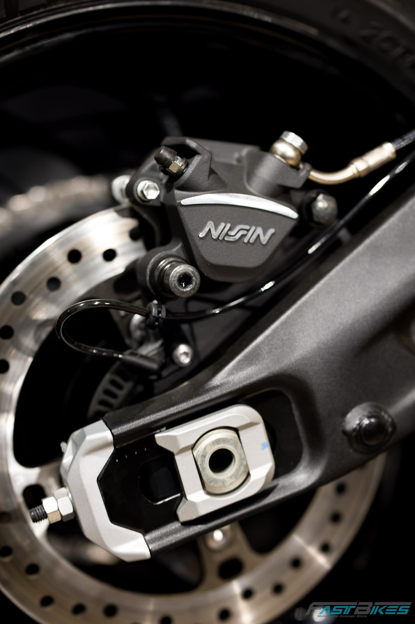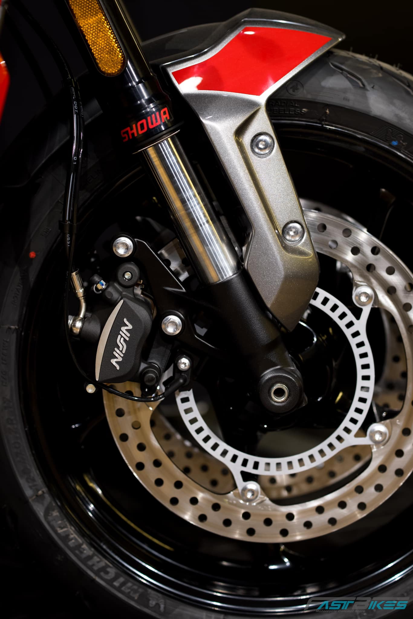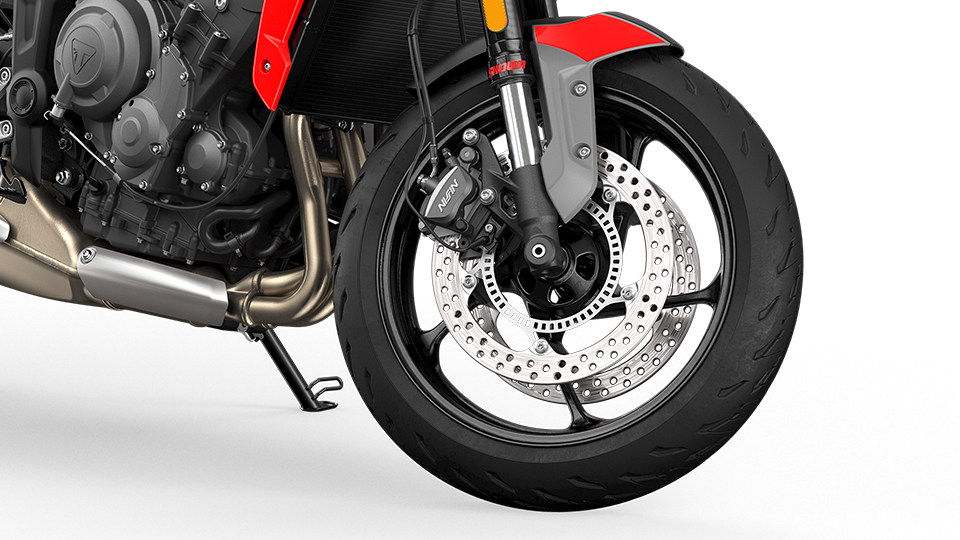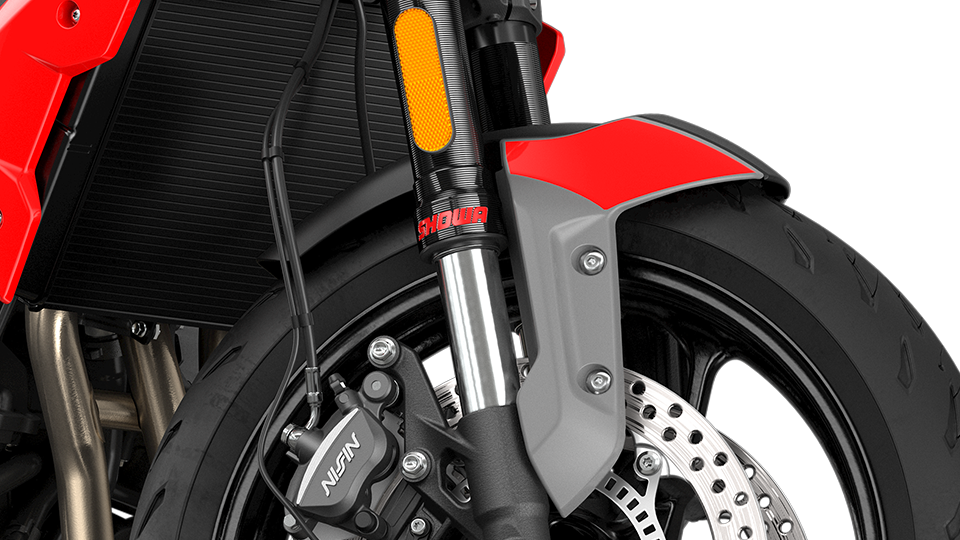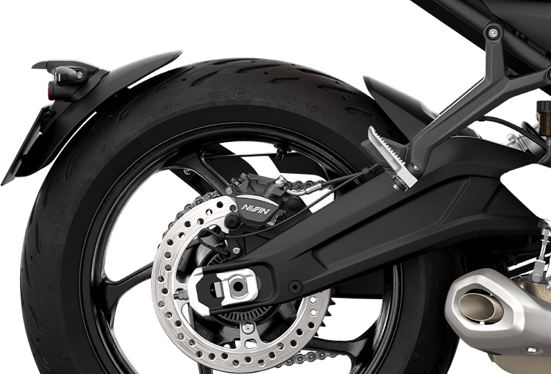 - Didatangkan dengan sistem brek cakera kembar 310mm dengan kaliper 2-piston (depan), dan cakera tunggal 255mm dengan kaliper piston tunggal Nissin (belakang).
