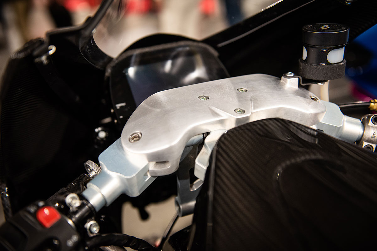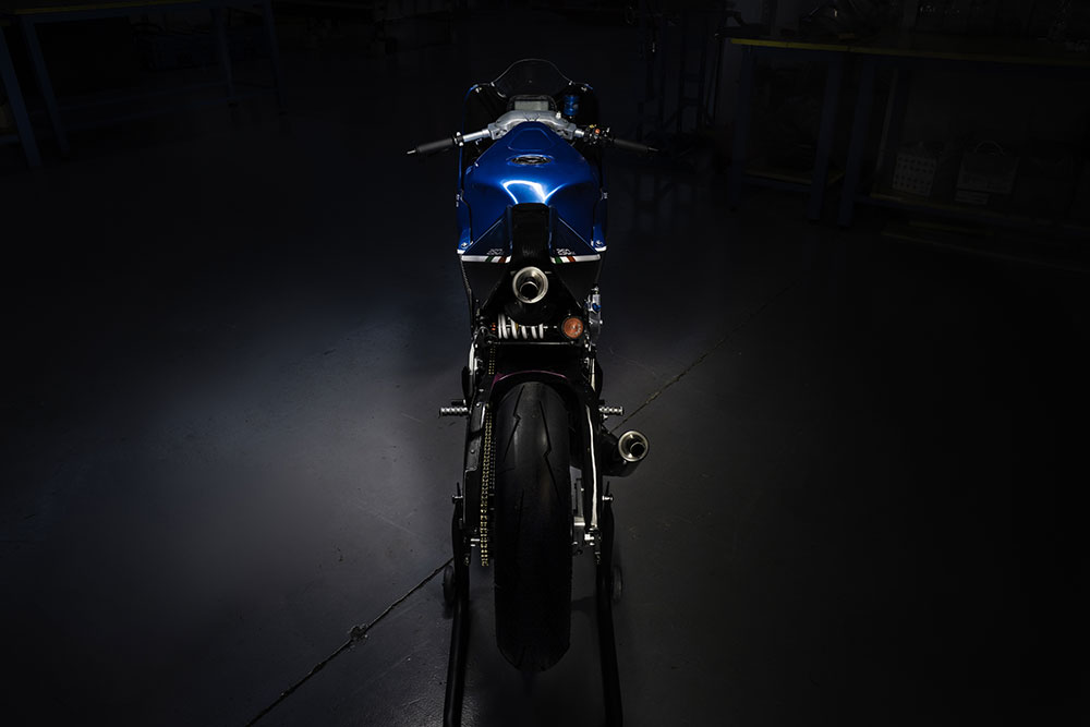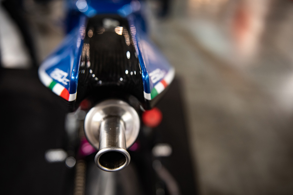 Fairing depan direka bersama skup untuk menyalurkan udara ke radiator di bawah tangki minyak yang membantu mengeluarkan udara panas dari enjin. Motosikal ini menggunakan dwi ekzos, dengan konfigurasi satu di sebelah kanan dan satu lagi disorokkan bawah pelana. Hmm… pelik juga.