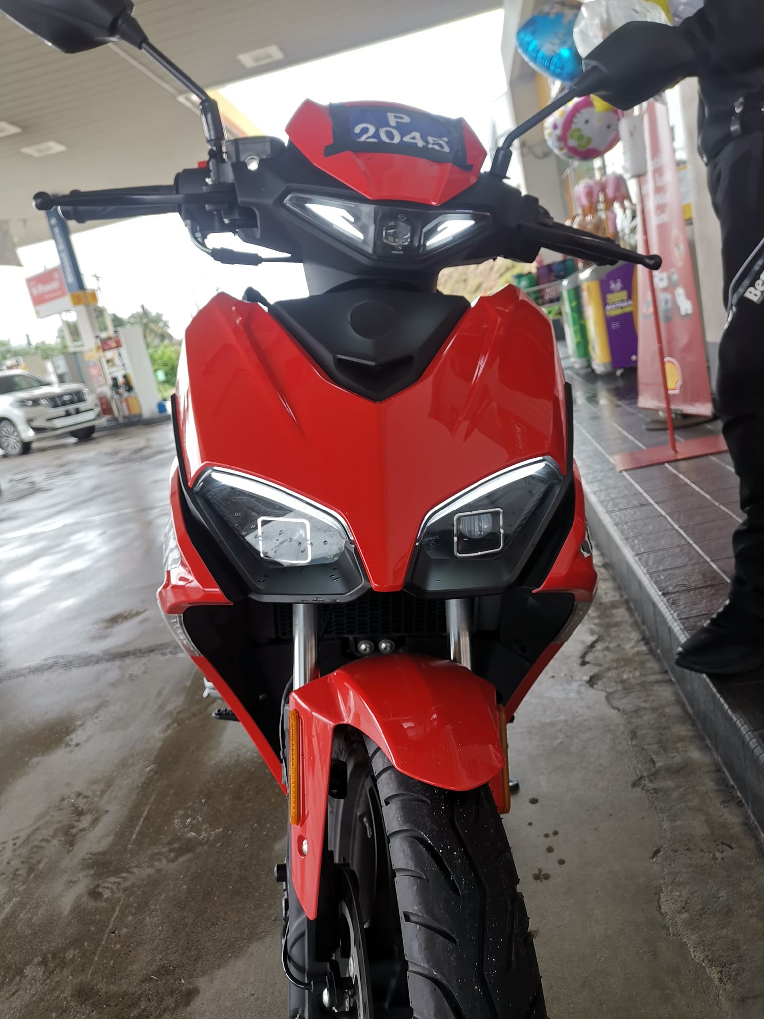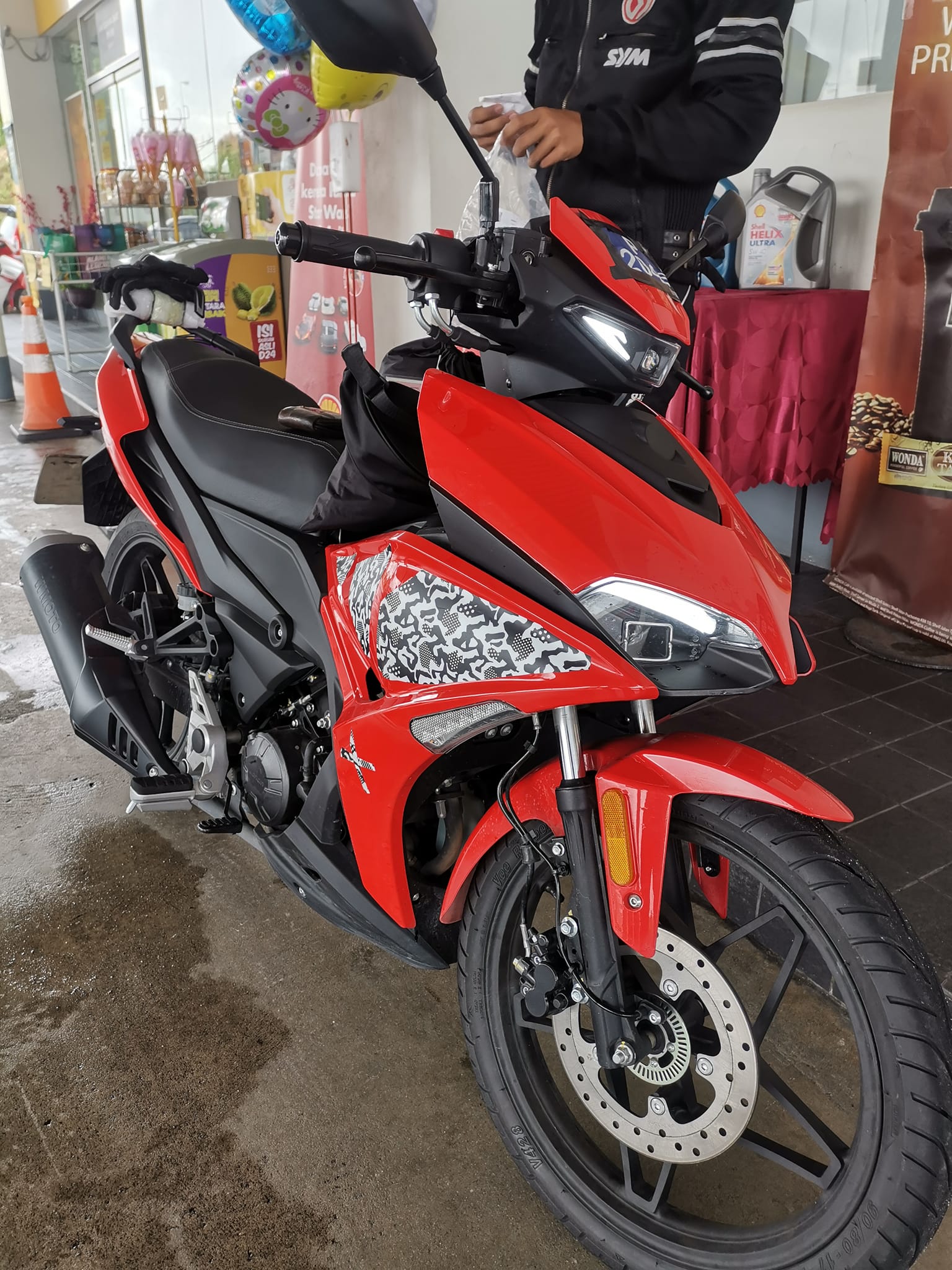 Foto dirakam itu mendedahkan rupa supermoped berwarna merah dengan rekabentuk badan menarik mengikut trend semasa.
