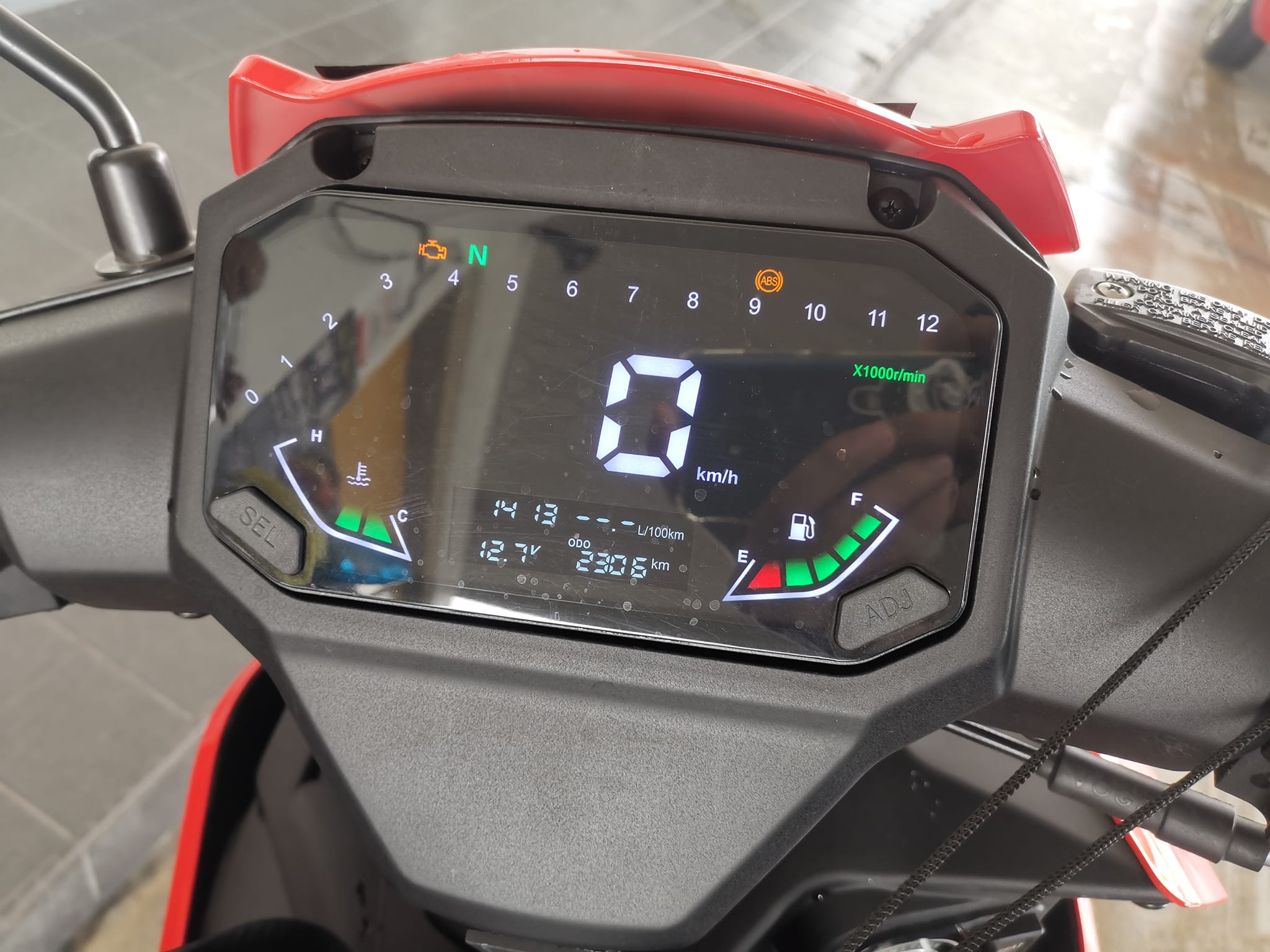 - Spidometer ditempatkan di tengah skrin, manakala odometer dalam skrin kecil di bawah bersama maklumat lain seperti jam, voltan bateri dan kadar penggunaan bahan api.