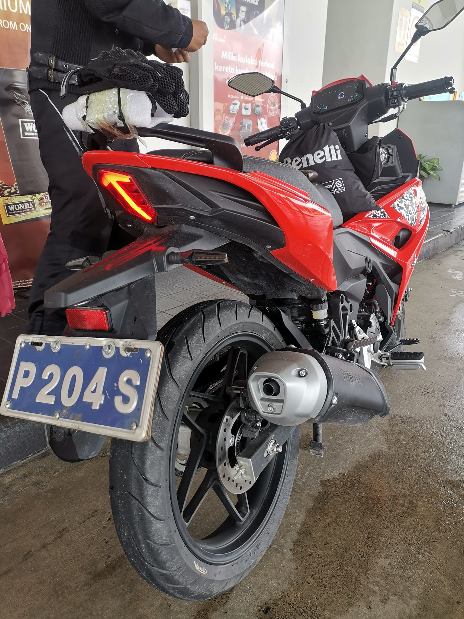 - Lampu signal depan disepadu pada fairing sisi yang diposisi bawah lampu projektor depan. Lampu brek belakang pula menampilkan rekaan huruf T. Sistem lampu nampaknya jenis LED.
