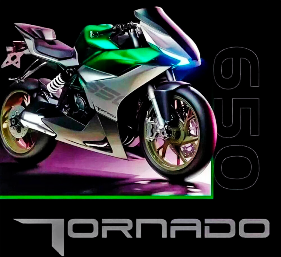 Melihat imej itu, model berkenaan nampak mirip Tornado 302R yang pernah ditamatkan pengeluaran dengan label Tornado 650. Foto kedua pula mendedahkan model streetfighter dan sportbike dengan label TNT 550 (foto bawah).