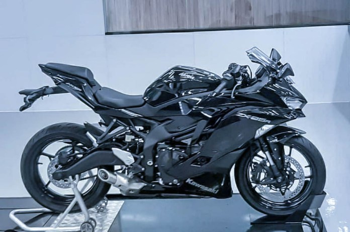 Terbaharu muncul pula foto warna hitam dengan grafik berbeza pada sportbike suku liter itu yang tertera perkataan ‘4 Cylinder’ pada fairing belakang. Adakah imej itu ZX-25R versi standard?