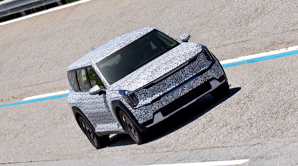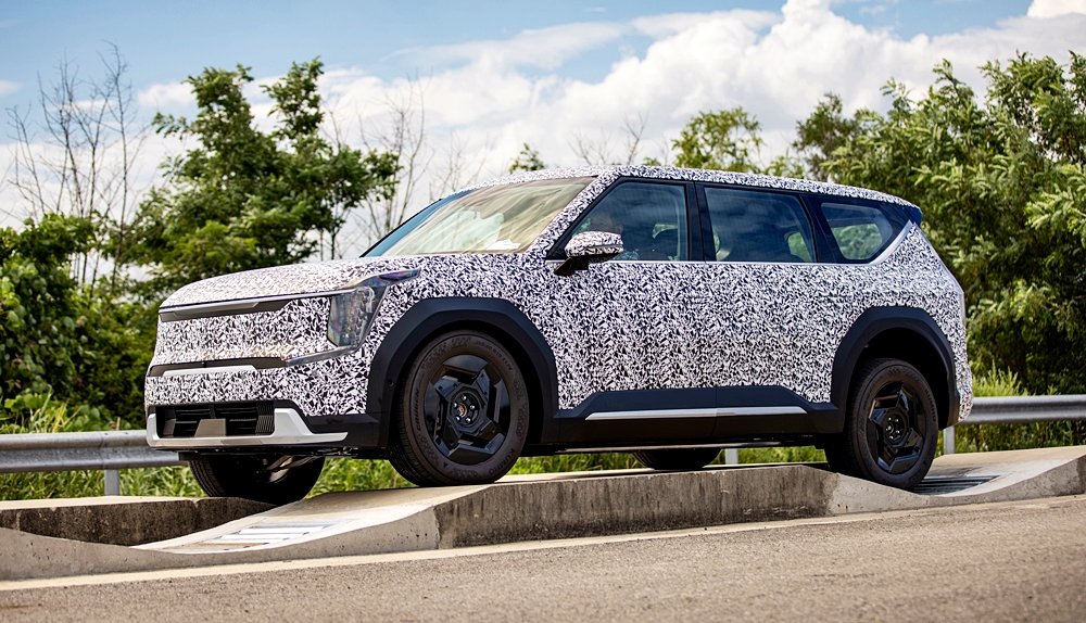 Pembangunan EV9 (2023) mengambil masa lebih 44 bulan (lebih tiga tahun) dan kini sedang diuji di pusat Kajian dan Pembangunan (R&D) Namyang, Korea. Dalam fasa akhir itu, SUV tersebut akan diuji secara ekstrem membabitkan ujian pendakian 4WD, trek kasar dan mengharungi air dalam.