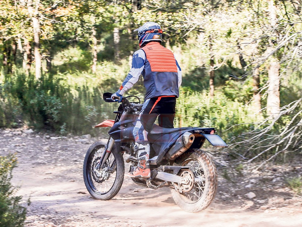Pelana juga direka semula supaya lebih selesa, termasuk tangki minyak 12 liter yang masih berkapasiti sama. Suspensi model Enduro juga berbeza, menggunakan fork WP Xplor 48 daripada 500 EXC-F dengan travel 300mm yang membuatkan tunggangan off-road jadi lebih mantap dengan padanan bersama penyerap hentak belakang. Bagaimanapun, suspensi SMC tidak berubah.