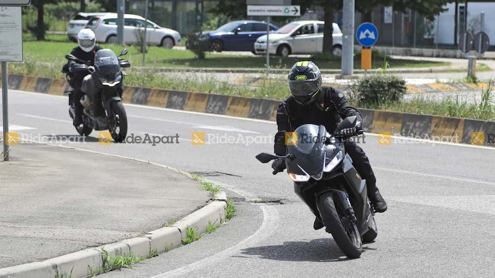 TULAR beberapa foto dan video intip menunjukkan model terbaharu Aprilia RS 440 sedang menjalani ujian di jalan raya awam bersama Moto Guzzi V100 Stelvio, lokasi dipercayai di Itali.