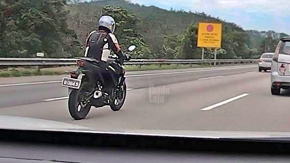 Menurut pengirim gambar, imej dirakamkan itu ialah Yamaha MT-25 yang katanya sedang ditunggang uji di Lebuh Raya Utara Selatan (PLUS).