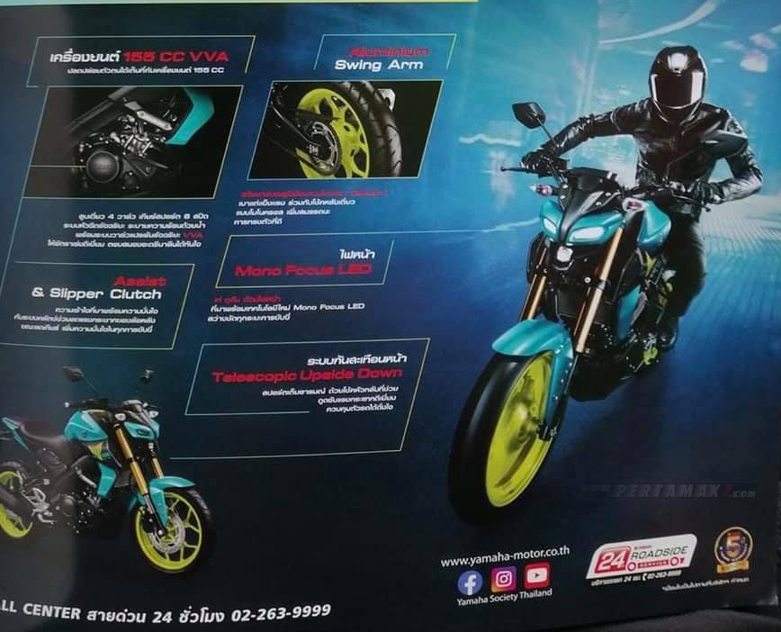 Paparan logo aniversari ke-65 Yamaha pada kulit depan brosur seolah-olah ‘petunjuk awal’ mengesahkan status kesahihan model berkenaan. Apapun, lebih baik kita tunggu pengumuman sebenar daripada Yamaha Thailand.