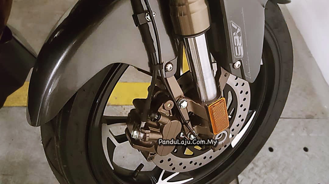 Keselesaan tunggangan diserahkan kepada fork terbalik (USD) dan tayar saiz 110/17 R17 di depan, manakala suspensi belakang menggunakan swingarm dengan sistem ABS Bosch. Posisi bar hendal tinggi memberi keselesaan menunggang dan penunggang boleh memilih dua mod tunggangan: Sport atau Eco.