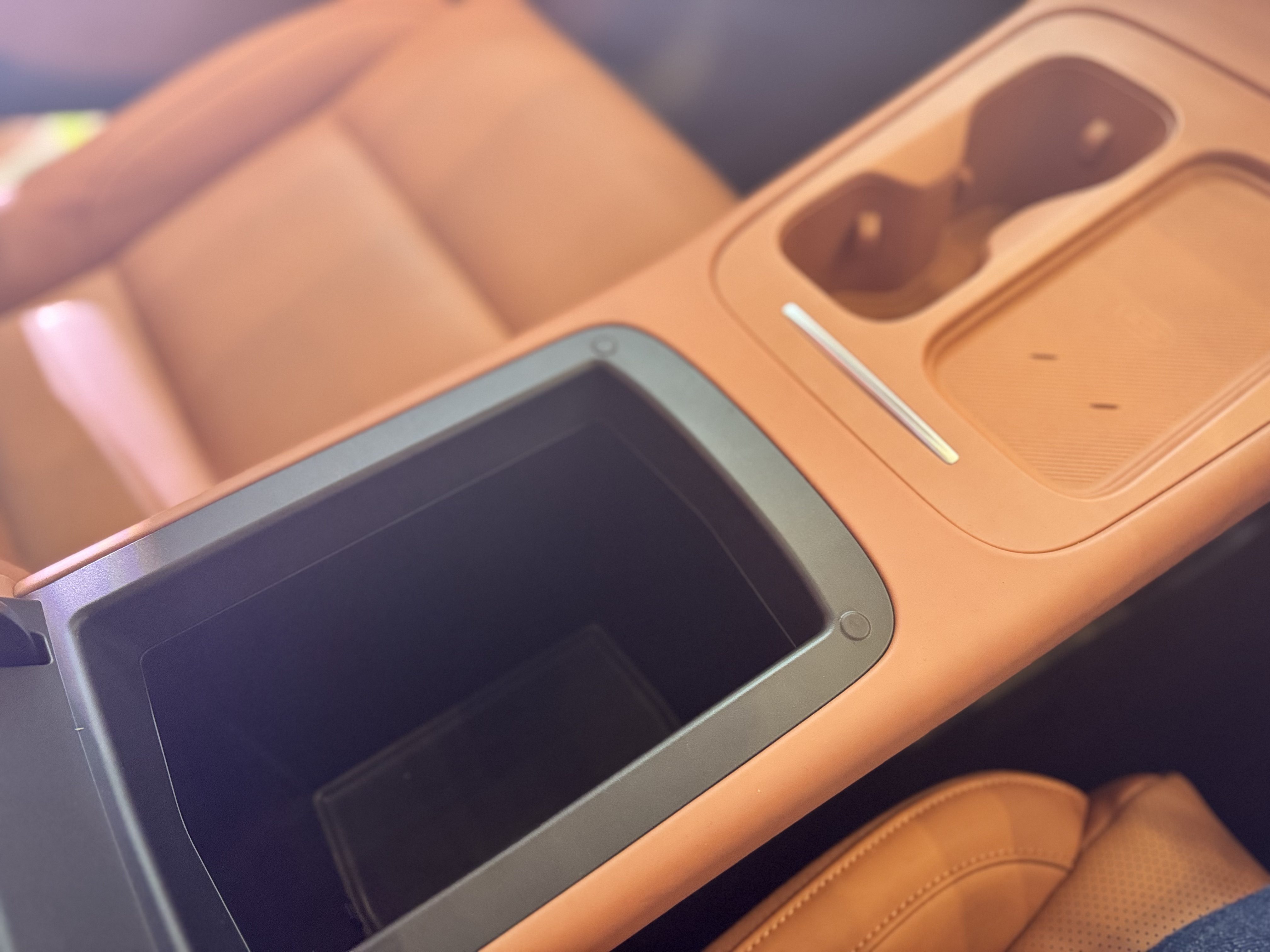 - Konsol depan dilengkapi pad pengecasan wayarles 15W, satu ruang simpan barang, satu soket 12V, dan port USB Type-C 60W dan USB Type-A.