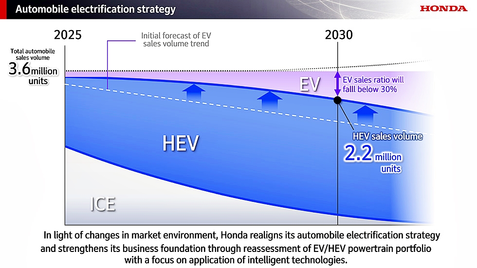 Walaupun komitmen Honda terhadap elektrifikasi jangka panjang kekal utuh, realiti semasa memaksa syarikat menilai semula pendekatan mereka. Kelembapan pasaran kenderaan elektrik (EV) global, terutama disebabkan perubahan peraturan alam sekitar dan dasar perdagangan antarabangsa yang menjejaskan sasaran jualan EV global, dan kini dijangka berada bawah paras 30 peratus menjelang 2030.