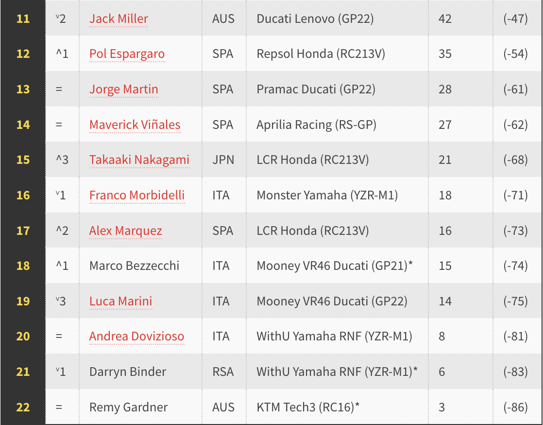 - Jack Miller AUS Ducati Lenovo (GP22) +12.957s