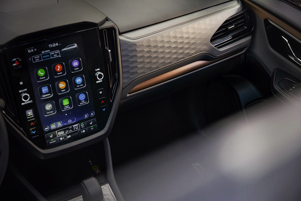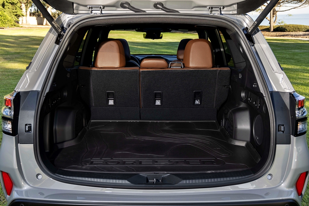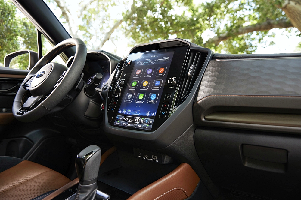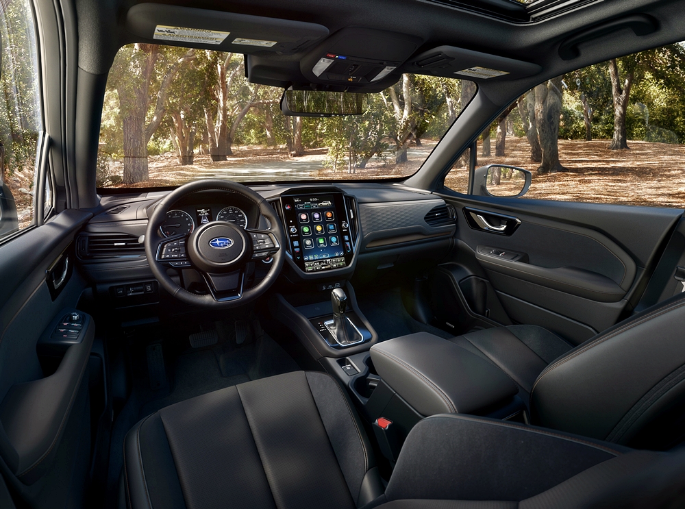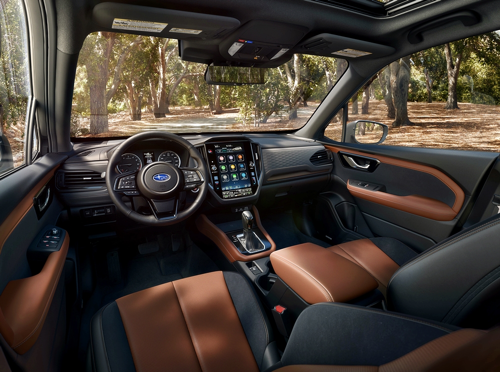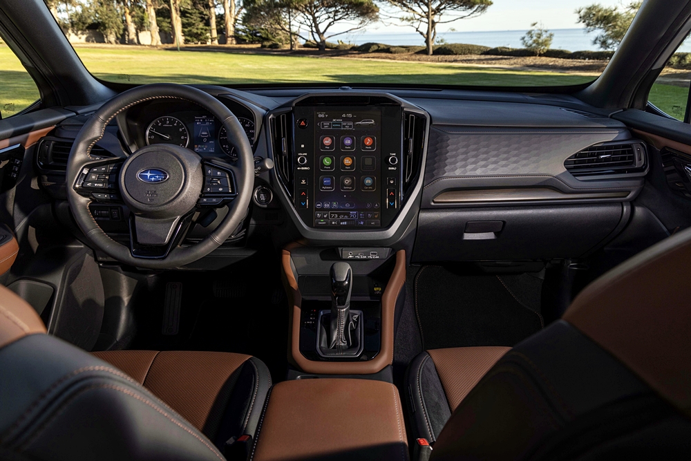 Ruang kabin mengekalkan identiti model baharu Subaru dengan skrin besar pada tengah papan pemuka. Corak pada panel papan pemuka menonjolkan sisi mewah Forester.