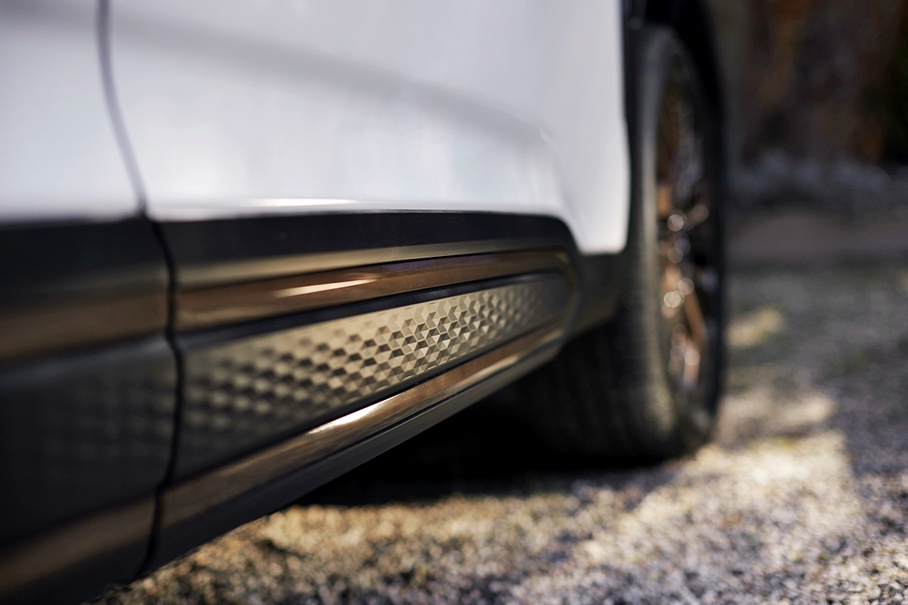 Dari sisi, gerbang roda menonjolkan keupayaan off-road dan lebih bersegi berbanding model sebelum ini. Varian Base dan Premium dipasang rim saiz 17 inci, manakala Sport dan Touring, 19 inci.