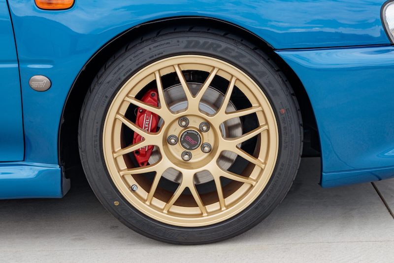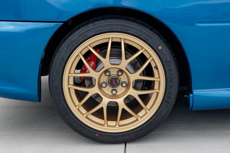 - Rim BBS 17 inci warna emas ialah unit stok kilang dan dibalut tayar 235/40 Dunlop Direzza ZII (2019). Sistem brek menggunakan kaliper STi merah, manakala sistem suspensi mendapat talaan ProDrive termasuk absorber Bilstein dan bar strut gentian karbon.