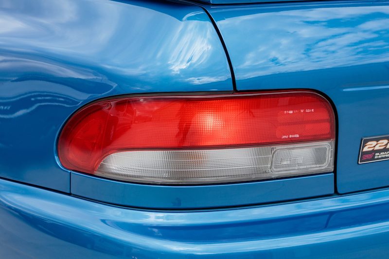 - Ada bonet ventilator aluminium dan skup besar, fender besar, spoiler belakang boleh laras, penutup lampu kabus, wiper belakang, cermin sisi boleh lipat elektrik, logo Subaru warna Cherry Blossom (merah), ekzos STi dan lencana 22B STi.