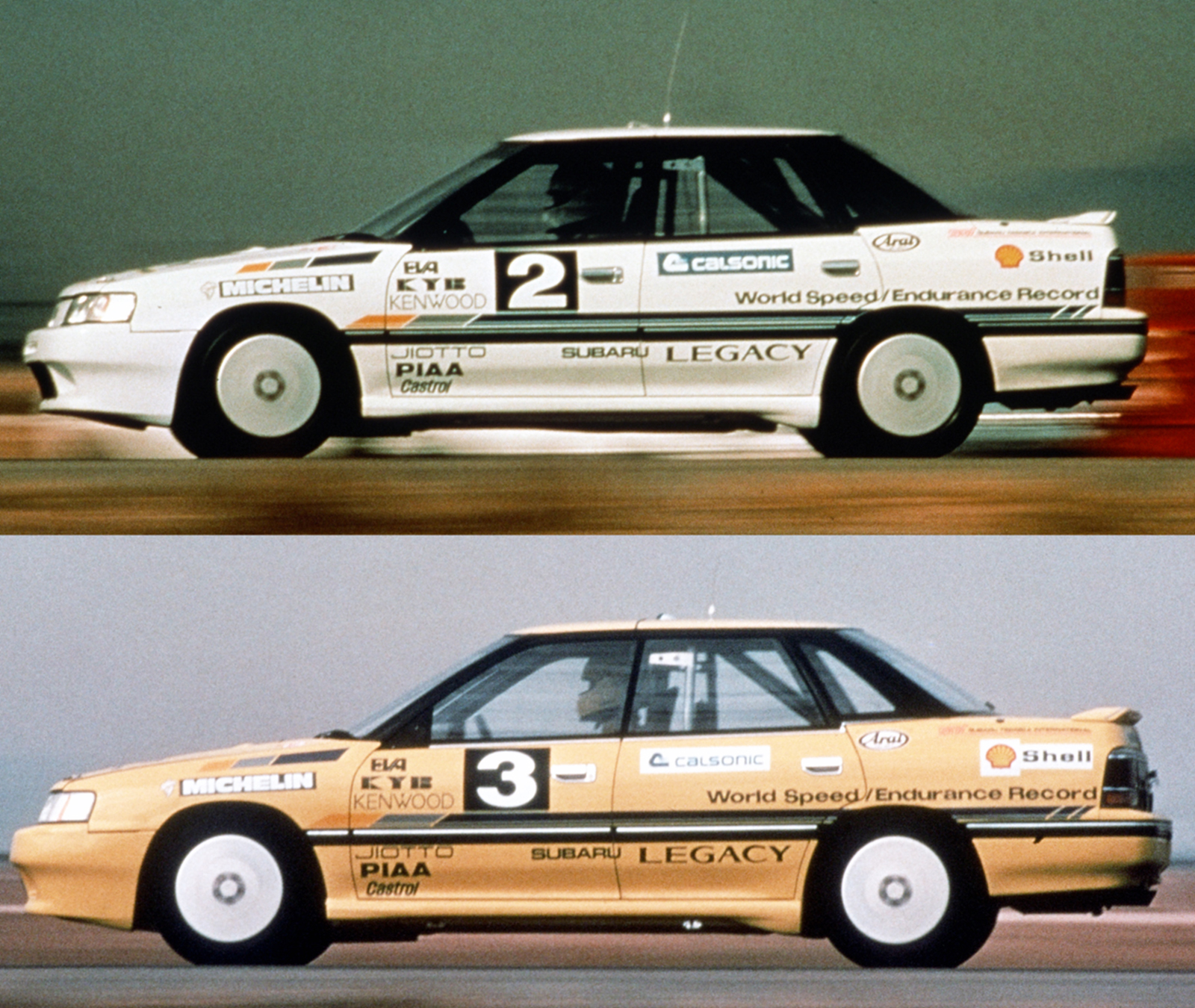 Pada 1989, model Legacy dihasilkan STI memecahkan rekod Enduran Kelajuan Dunia FIA membabitkan jarak perjalanan sejauh 99,779km selama 20 hari di litar ujian Arizona dengan kelajuan purata 222kmj.