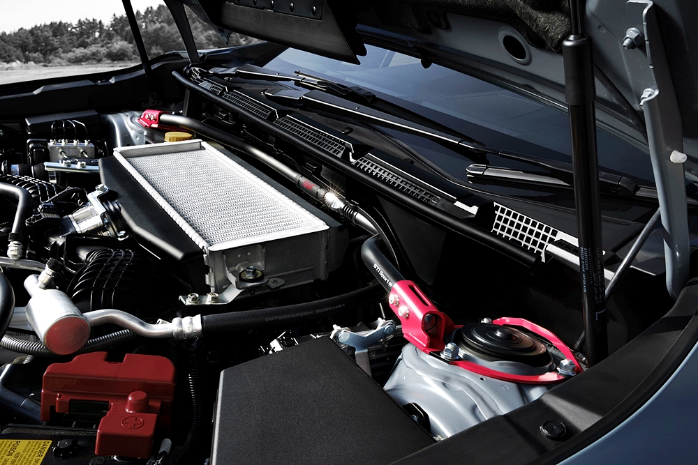- Sistem suspensi palang topang (strut bar) depan dengan logo STI Sport #.